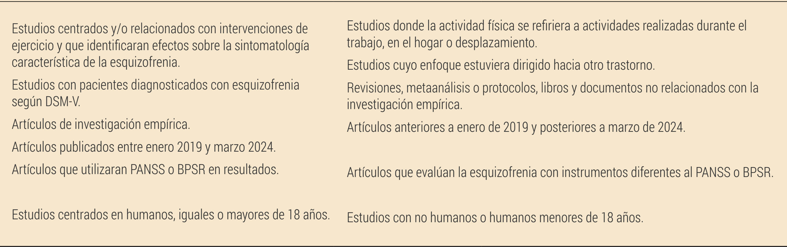 Para citar este artículo: González-Vila, P. y Peris-Delcampo, D. (2024). Efecto terapéutico del ejercicio físico sobre los síntomas de la esquizofrenia: revisión sistemática. Revista de Psicología Aplicada al Deporte y el Ejercicio Físico, 9(2), Artículo e13. https://doi.org/10.5093/rpadef2024a16