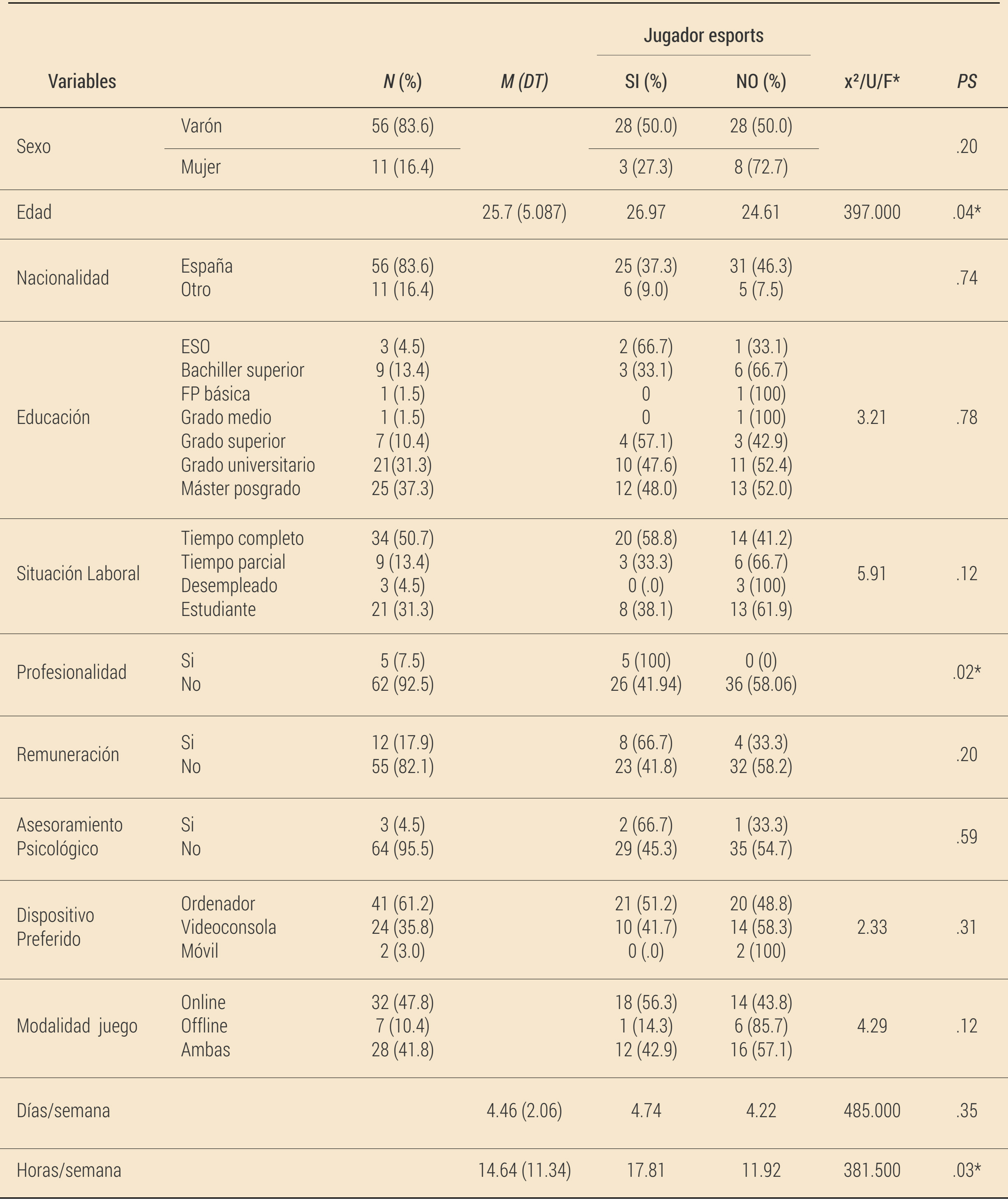 La excesiva dedicación al videojuego puede impactar sobre la salud física y psicológica de los gamers, desencadenando el Trastorno de Juego por Internet (Internet Gaming Disorder, IGD), trastorno que muestra relación con el proceso de regulación emocional. Este trabajo realiza una comparación entre jugadores de esports que participan en competiciones de videojuegos con respecto a otro tipo de jugadores de videojuegos que no participan en las mismas, comparando entre los grupos las habilidades para gestionar las emociones y su posible relación con el uso problemático de videojuegos. Para ello, se obtuvo una muestra de 67 jóvenes adultos entre los 18 y 39 años (M = 25.70, DT = 5.08) de los cuales el 46.3% eran jugadores de esports y el resto formaban parte del grupo no competitivo. Los participantes completaron una encuesta online que incluía: una evaluación a través del cuestionario Internet Gaming Disorder Scale – Short-Form (IGDS9-SF), una evaluación del proceso de regulación emocional empleando la Escala de Dificultades en la Regulación Emocional (DERS) y una serie de preguntas sobre aspectos sociodemográficos y de hábitos de juego. No se encontraron diferencias significativas en el uso problemático de videojuegos ni en las distintas subescalas de regulación emocional entre los grupos. A pesar de que algunos de estos procesos de regulación emocional (i.e. confusión, rechazo, descontrol e interferencia) se asociaron de forma significativa con el uso problemático de videojuegos en gamers, esta relación no se encontró en el grupo de jugadores esports. Los resultados sugieren la importancia de trabajar la regulación emocional de los jugadores de videojuegos para abordar los posibles problemas que surgen del uso de los videojuegos.