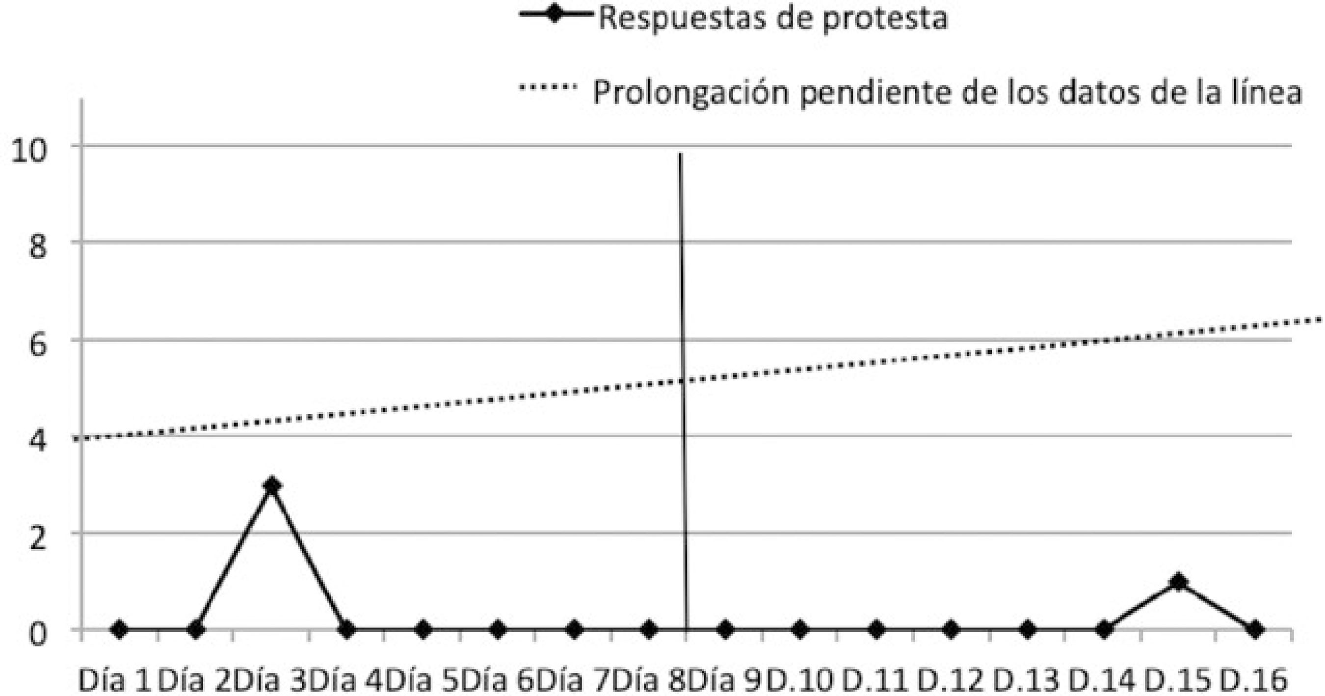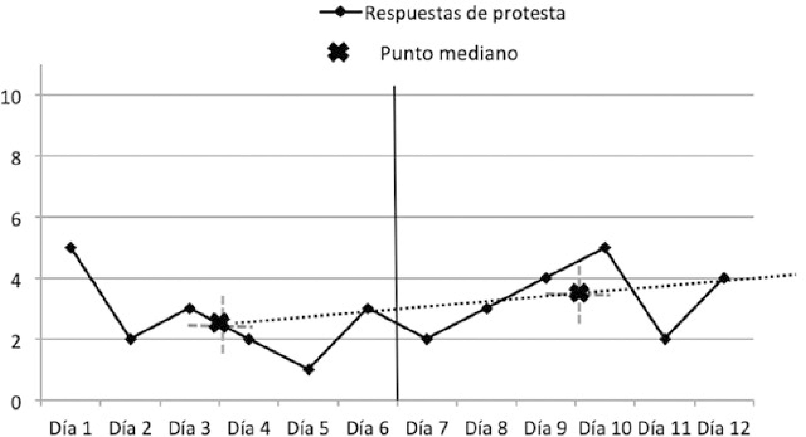 Vuelta a Fase A: tres semanas. Análisis estadístico Para determinar la tasa de cambio que experimentó la conducta del futbolista se utilizó la técnica conocida como “Split middle” (Crosbie, 1987), en la cual se ubican las medianas de los datos en la primera y segunda mitad de la línea base, dibujando una línea. Esta línea se extiende hasta la fase de intervención y se cuentan los puntos que están por encima o debajo de la misma (Matyas y Greenwod, 2014). No obstante, para confirmar un cambio significativo del comportamiento de los datos, o lo que es lo mismo, para rechazar la hipótesis de nulidad, se aplicó la prueba binominal. En primer lugar, como se puede apreciar en la Tabla 2, hay un claro descenso de las conductas problemáticas desde que la intervención comienza a llevarse a cabo. Si atendemos a los datos generales totales registrados en cada fase, podemos observar como desde la fase de línea base (A) a la fase de retirada de la misma (A´), las respuestas antideportivas han experimentado un cambio notable (Media A= 6.25; Media B=1.56; Media A´=.37). Tabla 2 Frecuencia total y medias por sesión de conductas disruptivas generales durante la fase A de línea base, en la B en período de intervención y en la A´ tras la retirada de la intervención (n = 1) En la Tabla 2, también se reflejan las respuestas específicas observadas en la primera y última fase del diseño experimental, fases pre y post intervención, observándose también el descenso de las conductas problema. A su vez, podemos ver como las respuestas específicas de “Protesta”, “Gestos de enfado” y “Dirigirse de forma hostil” son las que se dan con más frecuencia, por lo que más adelante nos centraremos en un análisis exclusivo de estas y su cambio. Para determinar la tasa de cambio que experimentó la conducta del futbolista se utilizó la técnica conocida como “Split middle” (Crosbie, 1987). En las figuras 1, 2, 3 y 4, podemos apreciar como la tendencia de los datos en este diseño experimental apunta a que estos, tras la aplicación de la intervención propuesta, descienden de manera evidente y marcada. En dichas gráficas, mostradas a continuación, se refleja la frecuencia de estas conductas en cada una de las sesiones y, por consiguiente, su evolución a lo largo de las fases. En las figuras 1 y 2 de presentan de forma general y en el resto de figuras se realiza un análisis de las conductas específicas. Figura 1 Repuestas problemáticas totales en las distintas sesiones de la fase A. También se señala el punto mediano que establece el criterio para la pendiente de los datos según la técnica split middle Figura 2 Repuestas problemáticas totales en las distintas sesiones de la fase A´. También se señala la prolongación de la línea que marca la pendiente de los datos de la Fase A o “línea de split middle” Figura 3 Repuestas de protesta en las distintas sesiones de la fase A Figura 4 Repuestas de protesta en las distintas sesiones de la fase A´. Prolongación de la “línea de split middle”. Si se observa la Figura 2, ningún dato supera la línea split middle original, lo que ya nos revela que el cambio experimentado por los datos sigue un patrón descendente, cosa que ocurrirá en todas las conductas observadas, como vemos aquí y veremos seguidamente. De este modo, obtenemos una p < .001, por lo que rechazamos la hipótesis nula y, por consiguiente, una posible explicación de la reducción de respuestas problemáticas debida al azar. A continuación, se realizará el mismo proceso de análisis con las conductas específicas que más incidencia mostraron, siendo estas la de protesta, los gestos de enfado y dirigirse de forma hostil a técnicos, árbitros o compañeros. Los datos mostraron una disminución en la fase posterior a la de la llevada a cabo de la intervención (Fase A´). No obstante, parece pertinente analizarlas por separado para observar posibles diferencias entre estas. Como podemos ver en las Figuras 3 y 4, como ya aconteciera en las Figuras 1 y 2, no se observó ningún resultado por encima de la línea original split middle. Obteniendo de nuevo una p < .001, podríamos afirmar que la alteración de los datos no se debe al azar, por tanto, rechazamos la hipótesis nula. En lo que respecta a las conductas de gestos de enfado, y pese a observar también como los datos han disminuido notablemente (Tabla 2), podemos ver como dos conductas no estuvieron por debajo de la línea split middle, cosa que no ocurrió en otras conductas. No obstante, con una p < .001, seguiríamos rechazando la nulidad de los datos y la influencia del azar como explicador de los cambios presenciados. Finalmente, atendiendo ahora a las respuestas de “dirigirse con hostilidad a técnicos, árbitros o compañeros”, la Tabla 2 y el análisis de los datos, con una p < .001, vuelven a evidenciar un cambio de estos no debido al azar, rechazándose así la hipótesis nula. En el deporte de competición, uno de los objetivos primordiales es conseguir que los deportistas rindan al máximo nivel posible. De este modo, sus probabilidades de alcanzar logros deportivos como fichar por un equipo mejor, ganar un campeonato o jugar de titular aumentarían (Gimeno, Sáenz et al., 2007). Como se comentó anteriormente, en la consecución de un rendimiento óptimo las variables psicológicas juegan un papel crucial, considerando el autocontrol o el presentar un comportamiento adaptado a los requisitos de la competición entre estas. En esta línea, como afirma Pelegrín (2005), las conductas agresivas, inadaptadas, irrespetuosas, hostiles y alejadas de la norma requieren de una intervención para mejorar la deportividad y el control de los deportistas. En el presente estudio, se intervino con un futbolista hacia la modificación y adquisición de comportamientos que le permitan aprender a controlar la expresión de la ira para contrarrestar la excitación y la tensión en situac