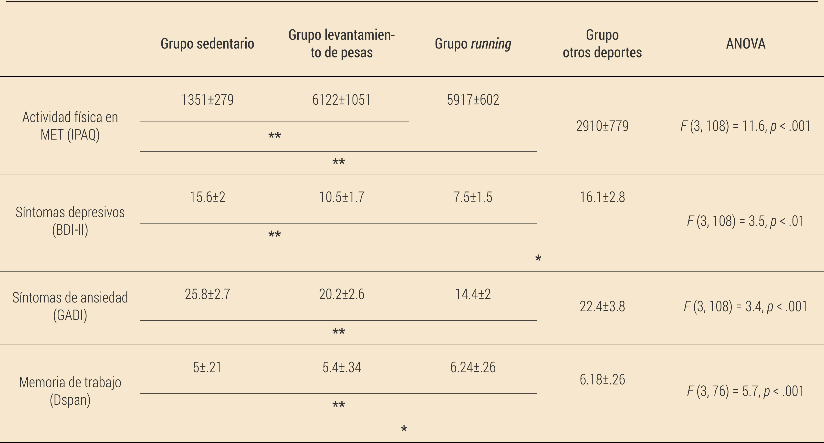 estilo de vida, ejercicio fÃsico, deporte, depresión, ansiedad, memoria de trabajoKeywords