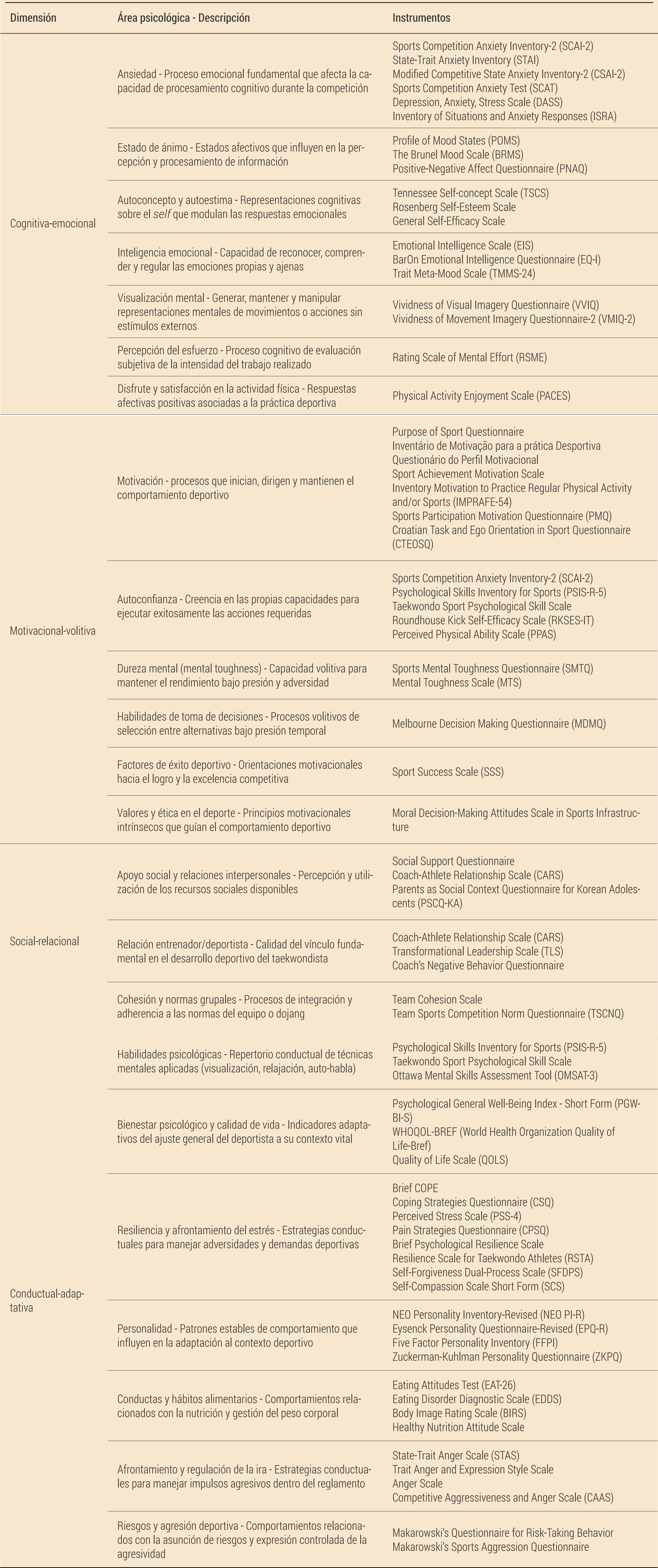 Para citar este artículo: Cardozo, L. A., Rodríguez, C. L., García, K. U., Castillo-Daza, C., Ibagón, J. P., Villarreal, E. S. D., Méndez-González, J. y González, A. C. (2025). Instrumentos de evaluación psicológica en taekwondo: Una revisión de alcance. Revista de Psicología Aplicada al Deporte y el Ejercicio Físico, 10(2), Artículo e15. https://doi.org/10.5093/rpadef2025a15