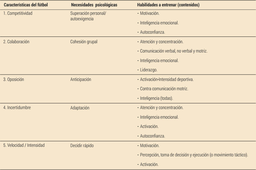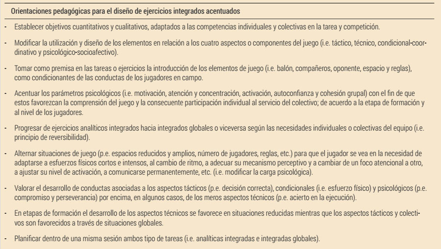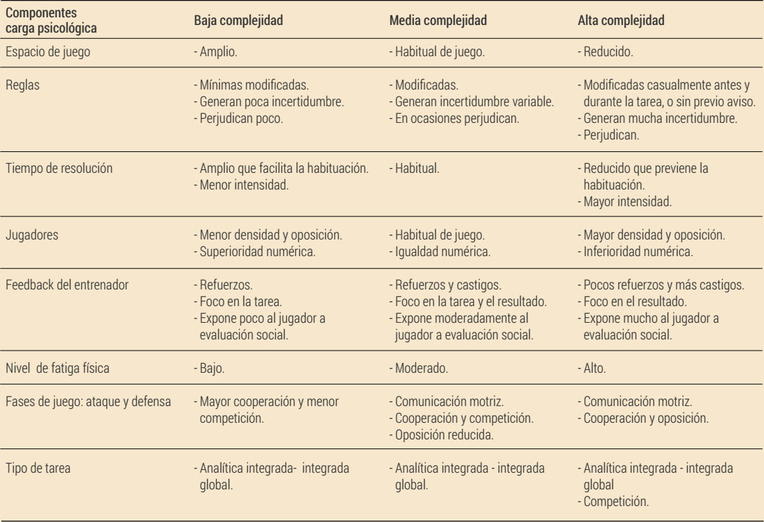 Despite the relevance of the psychological component in sports training, its specific integration in work sessions is still limited and far from the reality of the game. However, in tasks with the ball it is essential for the player to learn to understand the game, that is, to make adequate decisions (tactical competence) and to execute them properly (technical competence). This article aims to offer guidance on how to integrate the preparation of psychological skills with all other skills and aspects of the game (tactical, technical, conditional) through training tasks. For this, the integrated situations demanded by the competition are taken into ac, and the contents of the psychological component that are especially interesting to improve are accentuated through regulation of the psychological burden. This task will be carried out through the design of tasks or exercises with the ball.