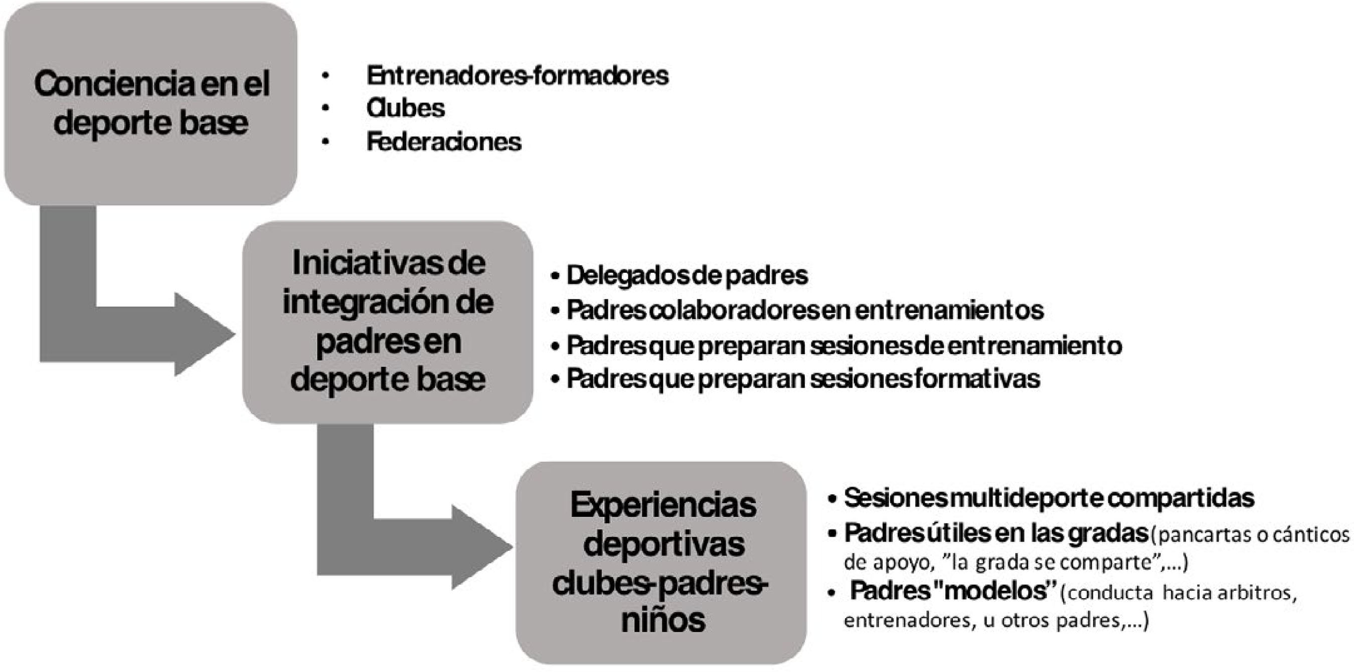 Reconhecer os esforços dos pais, em termos de tempo e dedicação, relativamente ao desporto dos seus filhos é absolutamente relevante para a organização de desportos para crianças. Aquilo que durante décadas foi transmitido pela literatura científica, não parece ser tão evidente na aplicação em campo, onde a integração das figuras parentais é muito baixo, sendo mesmo entendida como prejudicial em muitos casos. Há 8 anos que a LIGA BRAVE (Vega Baja del Río Segura, Alicante) procura, através de uma competição em valores desportivos, desenvolver comportamentos desportivos em atletas, pais e clubes de futebol. Para tal, pedimos a colaboração e participação dos pais e clubes (cerca de 3000 pessoas e 44 clubes), para que, como modelos de comportamento que são para as crianças, demonstrem o cumprimento de normas de comportamento que terão o seu impacto para a classificação final de Fair Play que será atribuída em paralelo à classificação desportiva, implicando a conquista de prémios e reconhecimentos para os jovens atletas no final da temporada. Ao longo de todo o ano, diferentes propostas de formação são feitas aos pais, as quais giram em torno de cinco objetivos específicos: a) gerar um sentimento positivo para a prática de desporto; b) como mostrar o apoio familiar aos seus filhos; c) a utilidade que os pais têm para favorecer o desempenho desportivo; d) compreender o “duplo percurso” de desempenho desportivo e escolar; e e) desenvolvimento de comportamentos positivos para se tornarem referências no desporto e na saúde. Conclui-se que os pais precisam ser treinados e orientados como qualquer outra figura no domínio do desporto infantil, para melhorarem a gestão dos seus filhos, os comportamentos de desportivismo e a compreensão do trabalho de outros profissionais da área, tais como o papel do treinador e os árbitros.